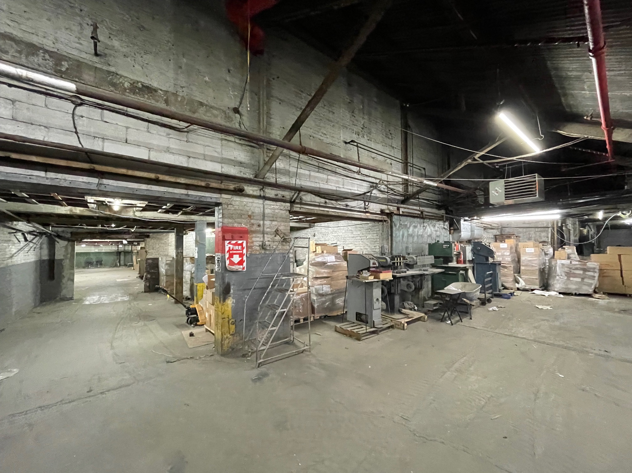 While documenting the first floor of the 1916 building which connects to the 1941 loading dock, I realized the wall on the inside of the loading dock was the Ingraham street facade — there were windows visible behind pipes and ducts, and bricked up areas indicating former windows, and the best part — some ghostly remnants of not only Englander Spring Bed Co. but also "MENTS" which may be the remainder of "CASEMENTS", one of the Parshelsky Bros. products!